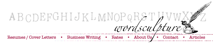 WordSculpture is a premier business writing service, offering you the highest quality executive resumes, articles, presentations, and speeches. With ten years of professional writing expertise, WordSculpture is uniquely positioned to provide you and your business with products that give you the competitive edge.